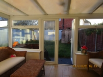 1 Wall mounted 1 radiator, Fitted timber effect laminate floor, 1 sliding patio door providing access to rear conservatory