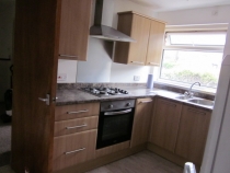 Fully fitted kitchen with appliances including modern built in oven and hob with extractor fan, Upright Fridge freezer and washing machine