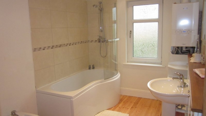Stylish Modern Bathroom with 4 piece suite and P shaped bath and shower