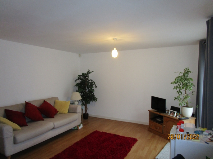 Spacious Lounge area with dual openning patio doors to small balcony\terrace with decking. Hard wearing laminate flooring and wall mounted programmable heater.