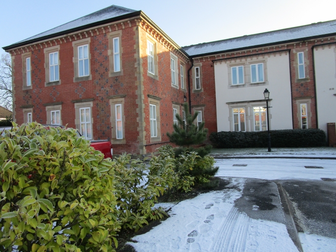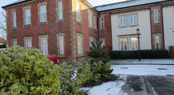 Large parking area to the front and rear of the development and well maintained mature gardens with lawned area and shrubs located around the development.