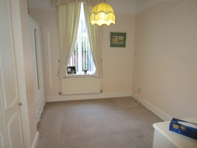 Elegant and spacious bedroom with large built in wardrobe to side of room. High cielings and decorative coving. Luxury carpeted floor with wall mounted radiator. large Double glazed Window.
