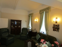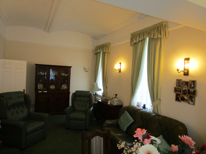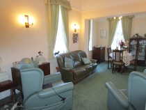 Elegant and Spacious Lounge benefiting from high curved original lenght cieling with decorative coving along with 4 windows providing lots of light. Luxury carpet and soft furnishings. Wall mounted radiator.