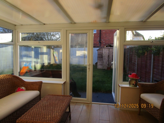 1 Wall mounted 1 radiator, Fitted timber effect laminate floor, 1 sliding patio door providing access to rear conservatory
