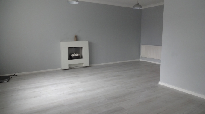 Wall mounted feature electric fire, 1 radiator, Fitted timber effect laminate floor, 1 large rear facing UPVC window, upvc door providing access to rear garden
