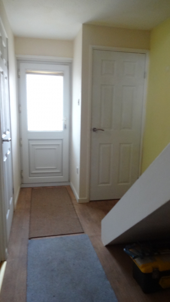 Double glazed UPVC entrance door, Laminate effect lino flooring, wall mounted radiator. Fitted smoke alarm understairs storage area and door providing access to: